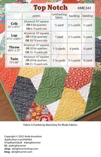 The Top Notch pattern really lets your favorite prints be the star of the show! It is a great way to use your favorite Layer Cake squares, but the pattern also gives options for using fat quarters or 1/3 yard cuts of yardage as well.